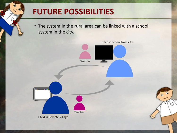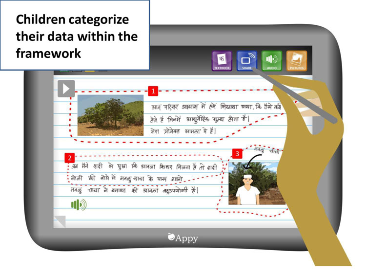 A primary data collection in form of user studies was done to understand the users. Observation of Education was done in few remove village schools in Pune District. The user studies included visits to schools, observing the learning and teaching process, talking to teachers, visiting the homes of a few students, talking to the parents and the children themselves.