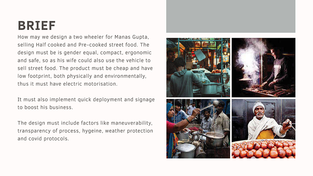 Home / Case study / Designing a Two-wheeler for Mobile Street Food Vendors / Case Study - Slide Show