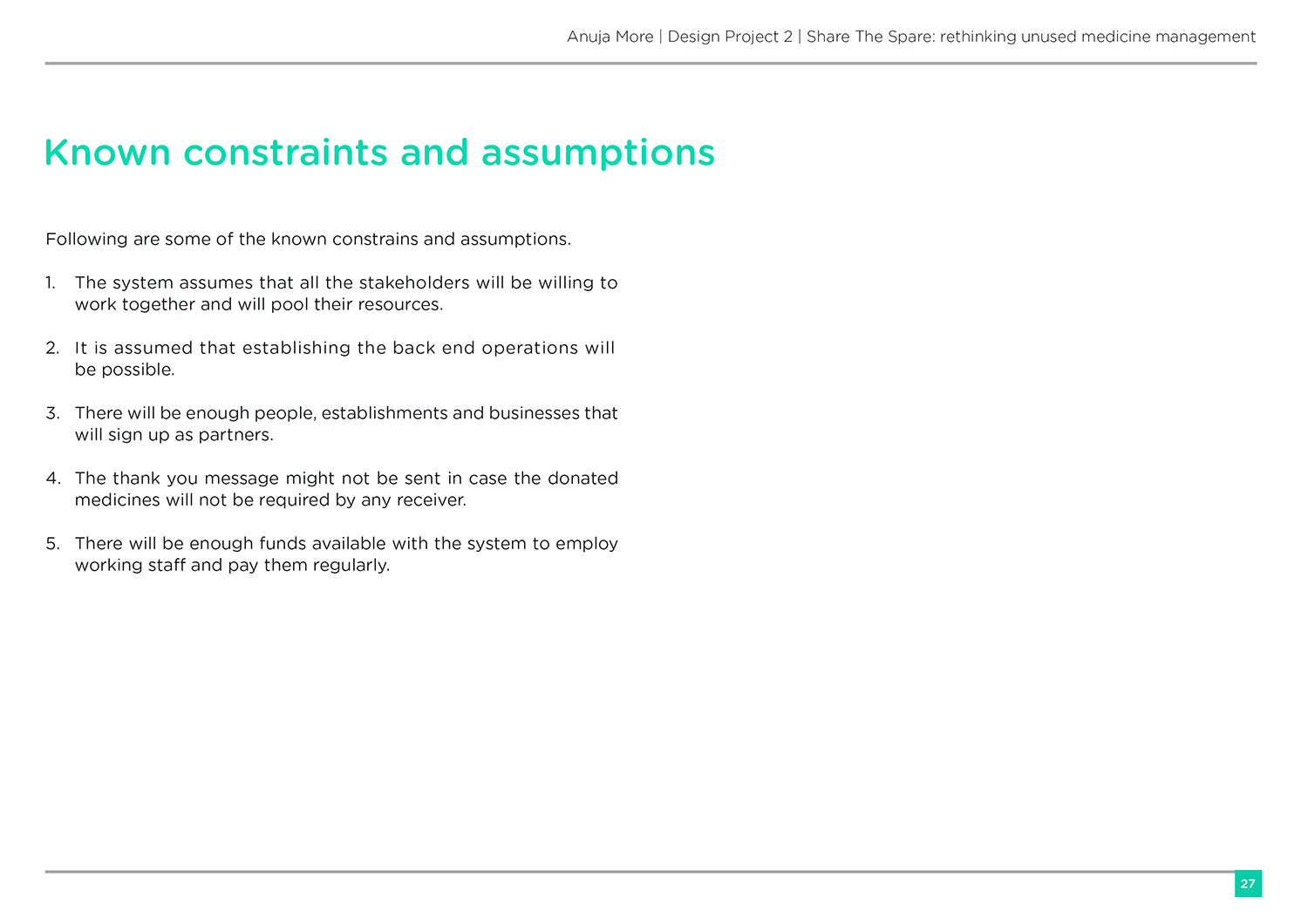 • Constraints and assumptions