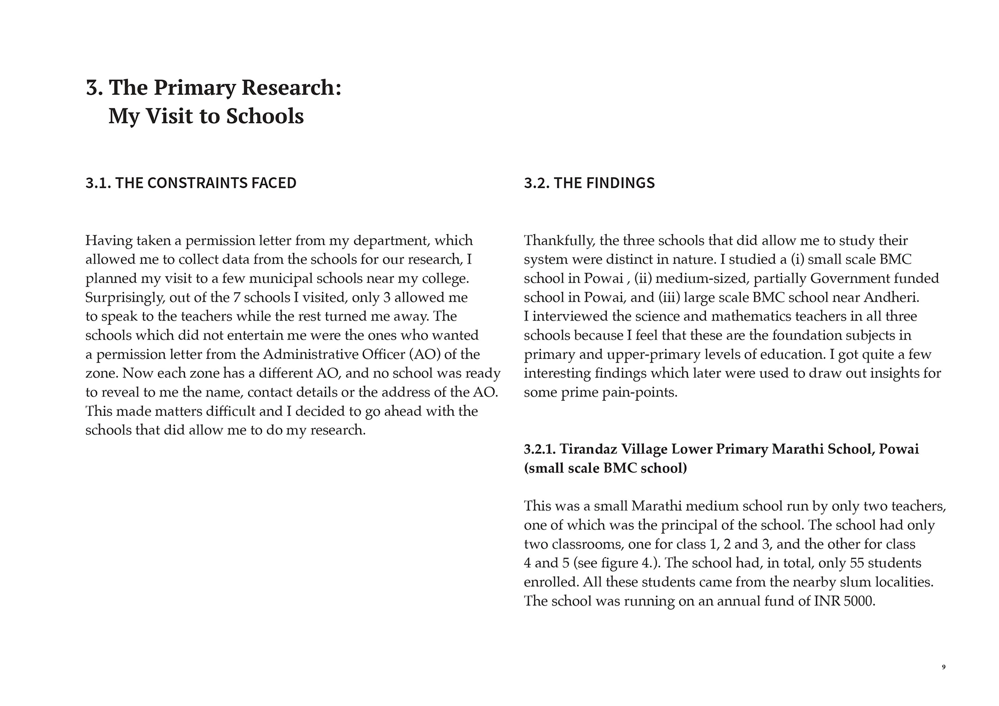 • The Primary Research: My Visit to Schools