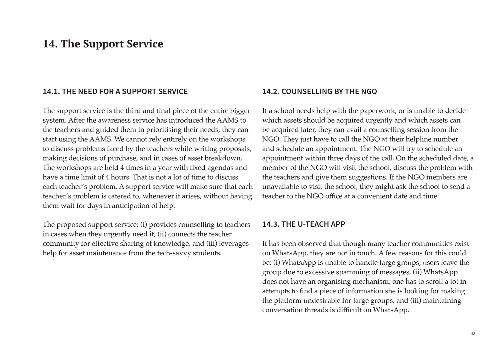 - The need for a Support Service