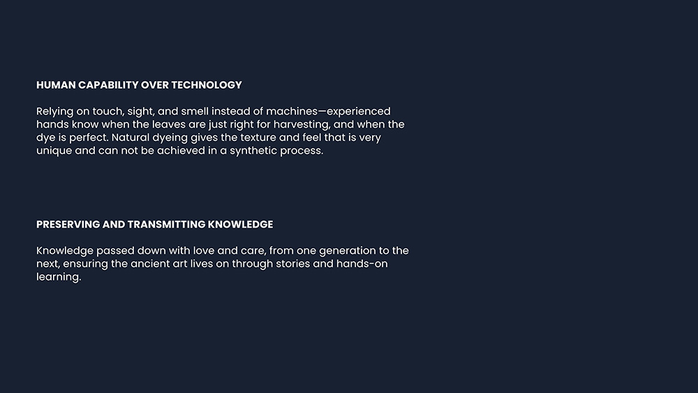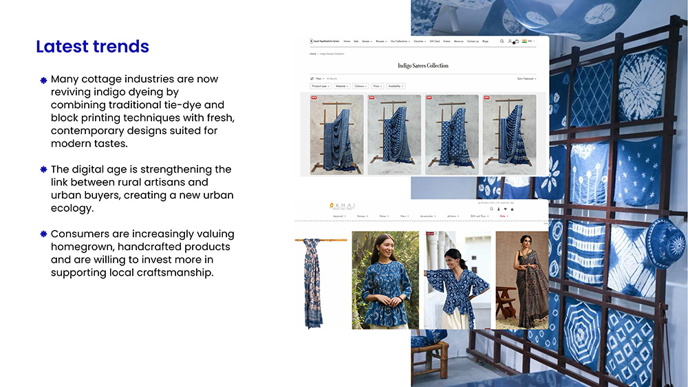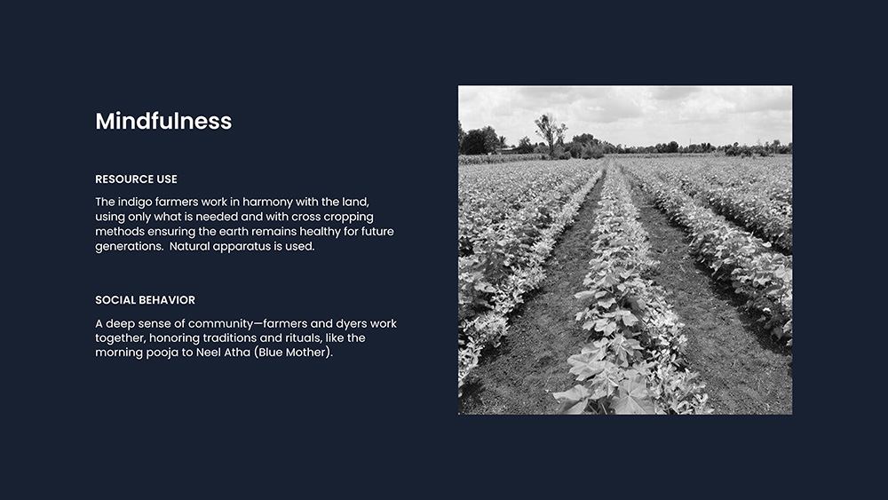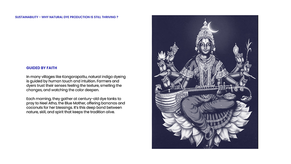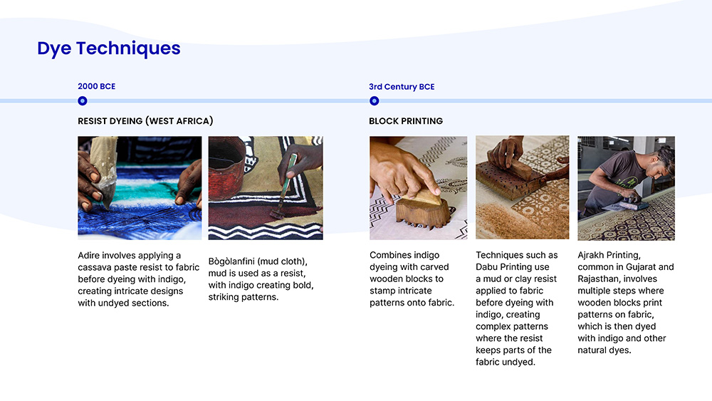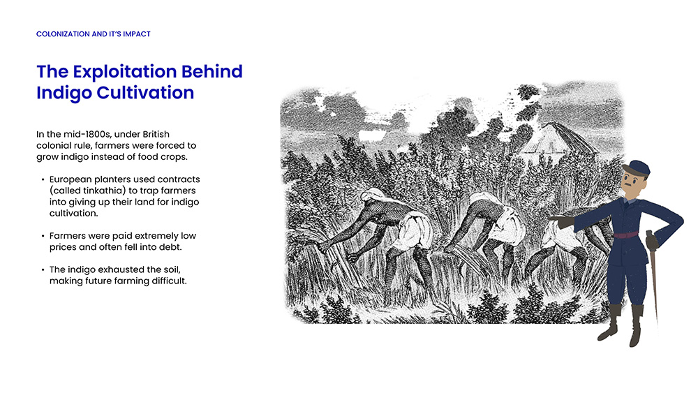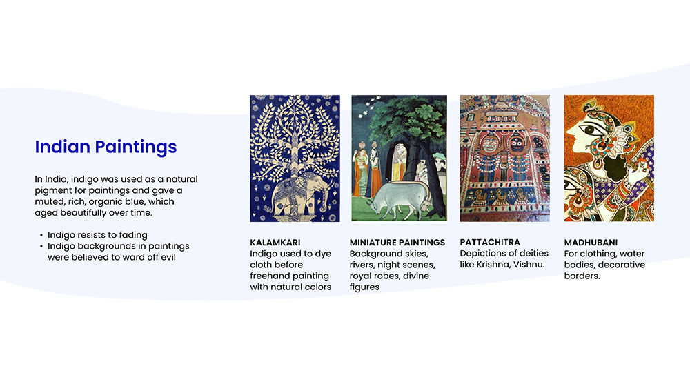 Swarangi Bhave, Madhura Kulkarni, Khushi Agrawal, and Saloni Rajput chose Indigo as the focus of their visual storytelling project, exploring its rich and layered history. Often called “blue gold,” indigo is far more than a dye, it symbolizes culture, trade, and transformation. Its origins date back to the Indus Valley Civilization around 2500 BCE, where blue-dyed cotton fragments highlight the early mastery of Indigofera tinctoria.