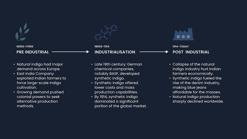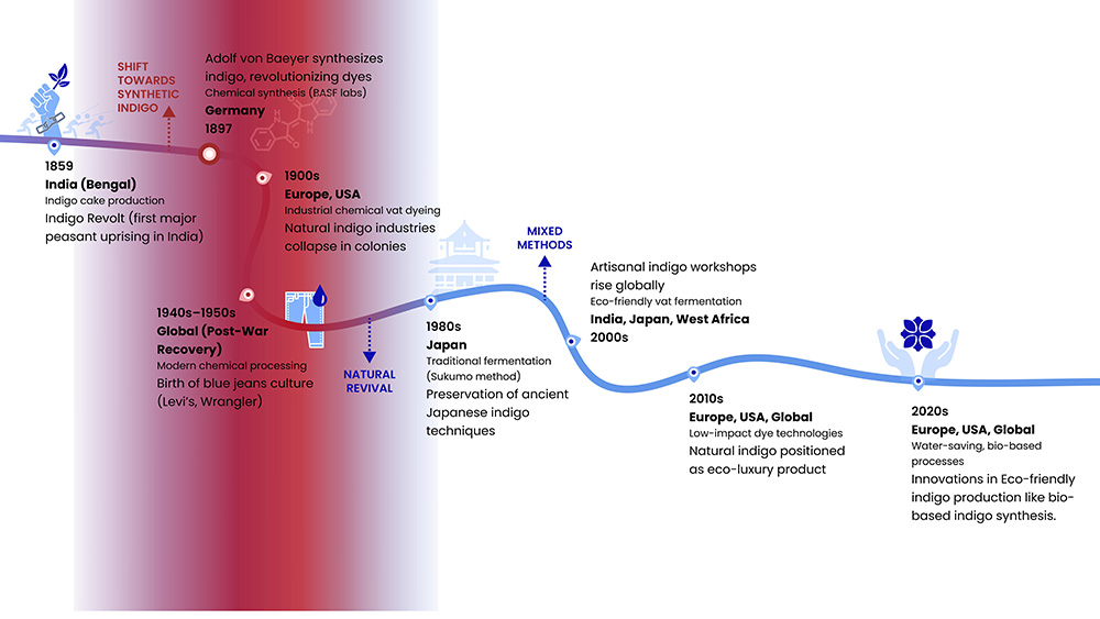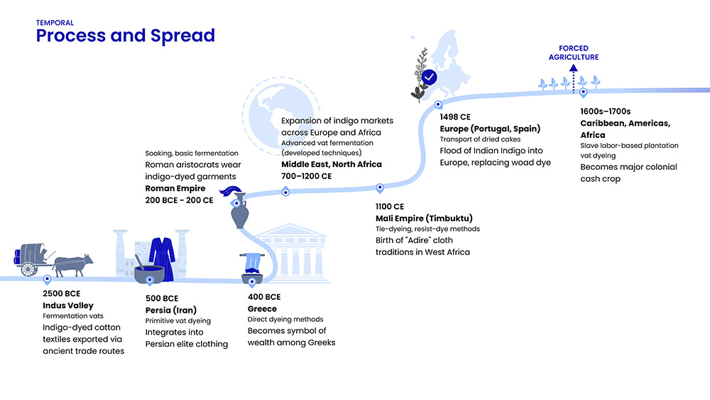 Celebrated for its rare and vivid hue, indigo became a prized luxury in ancient Persia, Greece, and Rome, eventually adorning elite textiles across the world. As trade routes expanded, so did its influence, carrying the deep blue of Indian vats to European aristocracy. Yet, indigo’s story is also marked by colonial exploitation and the Indigo Revolt in Bengal. From ancient traditions and artisanal practices to synthetic innovations and sustainable revivals, indigo’s journey is a vibrant tapestry of artistry, resistance, and resilience.