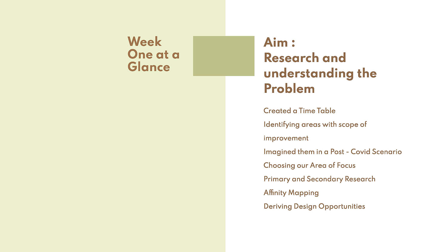 • Week Two – Analysis and redefining the problem