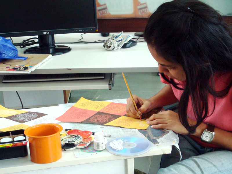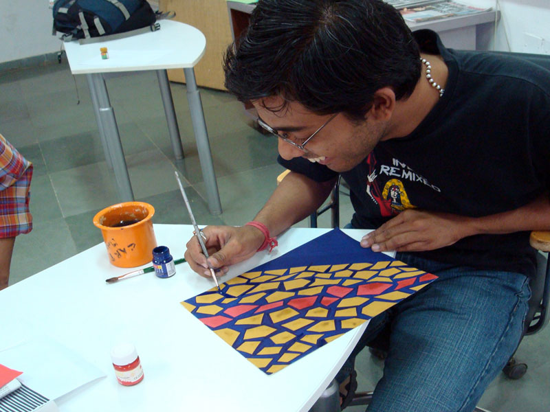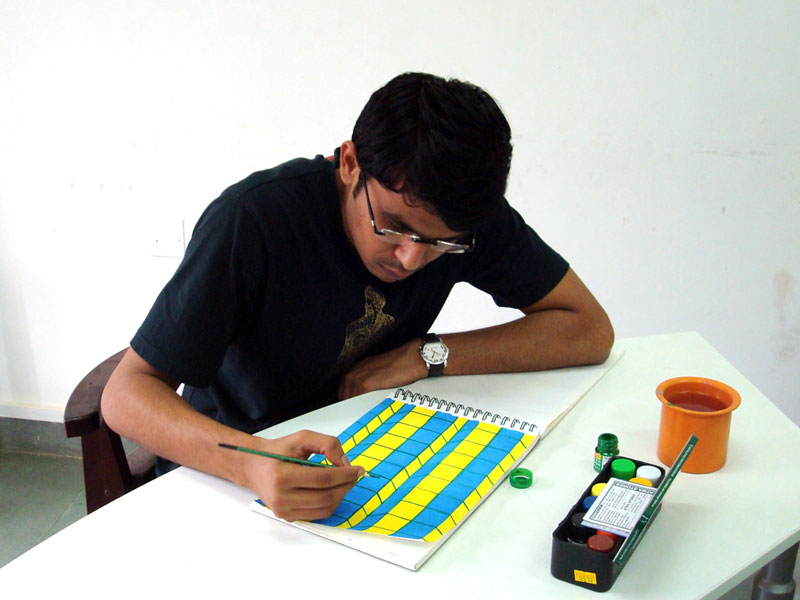 An exciting exercise, it simultaneously exposes the student to three most important phenomena of Optical mixture, Colour interaction and Bezold effect. It also fine tunes the student’s composition making capabilities.