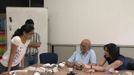 The other three groups were also asked to make more quick models as professors wanted everybody to explore that elusive WOW factor in their design. A discussion with the toy group helped the students cleared their doubts about mechanism issues, but it still needed to be tried out in actuality. Students were asked to make a function-proving model before working on the formal aspect of the design.