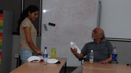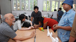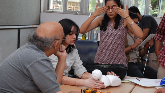 Professors were meeting students after a weeklong Diwali vacation. Prof. Bapat and Prof. Purba had a meeting with each student before the beginning of vacation. They had given them the necessary feedback on their initial design brief and also instructed them that from now on they would like to see the quick-rough-models, scaled or 1:1 whichever best suits the type of contraption on which they are working.