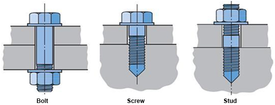 Threaded fasteners are the principal devices used for assembling components and they are usually grouped into three main categories as shown in the figure: