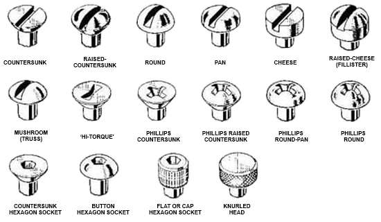 The most common types of machine screw head shapes are pan-head, cheese head, countersunk, button head, socket head, and Phillips head. While screws require a regular screwdriver to tighten, the socket head needs an Allen key, and phillips head needs a star screwdriver Countersunk screws are used when the screw needs to be flush with the surface. Set screws and grub screws are headless.