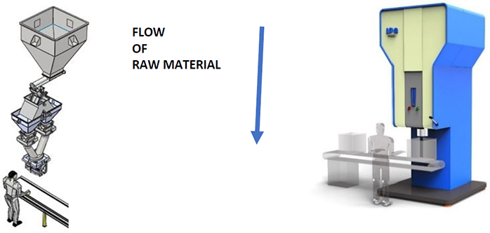 In this example, product design has followed the component layout. The chute height has been modified to suit the operator’s convenience.