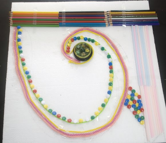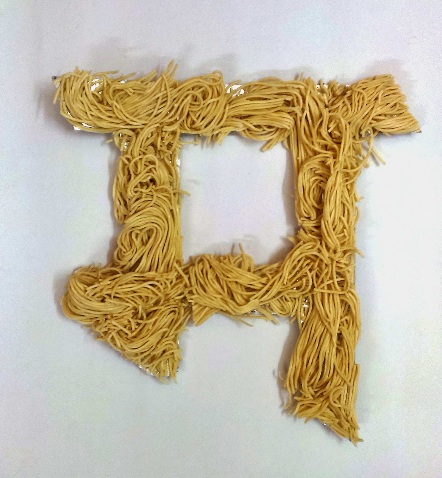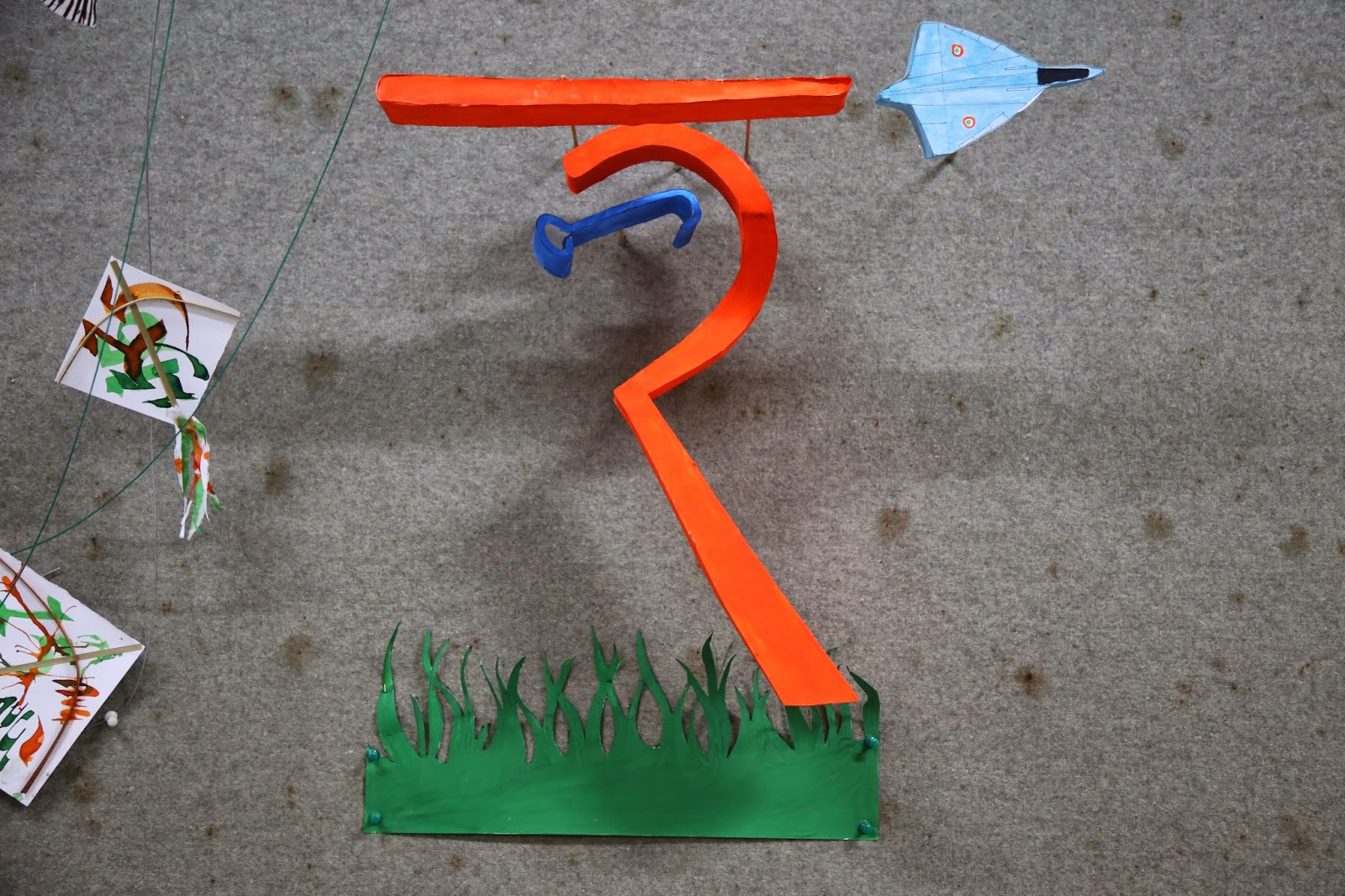 Task: The first letter of student's name in native language is taken for this assignment. The aim is to explore the three dimensional quality of letter forms and then use available objects and materials to create an interesting installation which reflects a particular thought associated with a name and a theme.