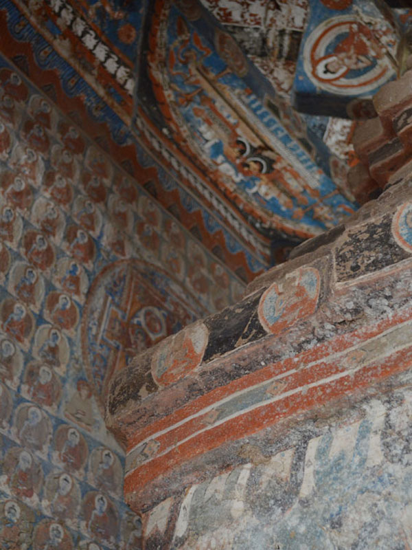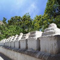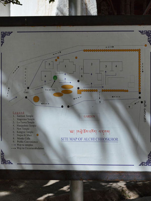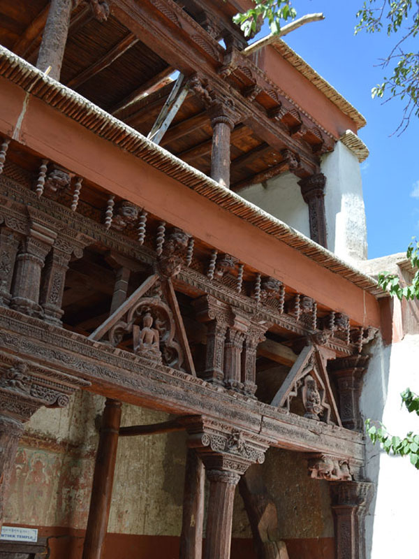 Alchi Village is located outside the city of Leh. Interestingly, it has one of the oldest monasteries, which is built on a lowland and not high up on a hilltop. The workmanship is influenced by the Kashimiri style of architecture and painting. The creation of the Alchi temple complex has been attributed to Rinchen Zangpo (958–1055) a famous scholar – translator from the 10th century. The Alchi monastery is considered to be one of the foundations of Vajrayana Buddhism. The entire complex has 3 shrines, the 'Dukhang' or the Assembly hall, the Temple of Manjushri and the Sumtsek Temple. 'Chortens' or stupas can been seen scattered throughout the temple complex. The monastery is now under the care of the Gelugpa Sect, also known as the 'Yellow hats' which is a school of Buddhism.