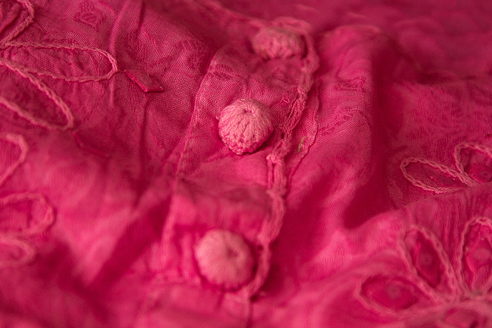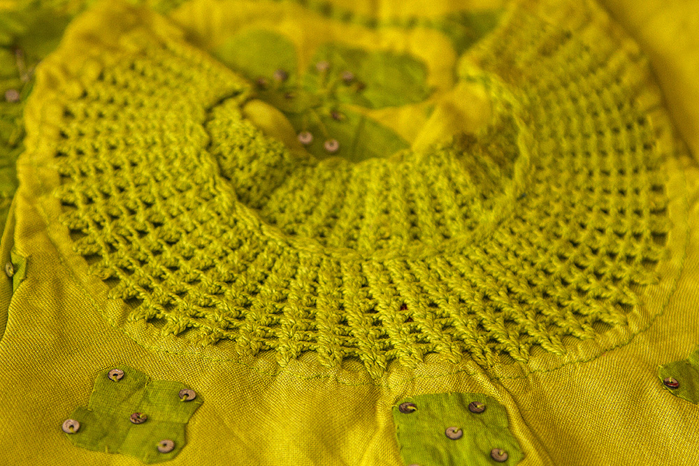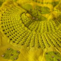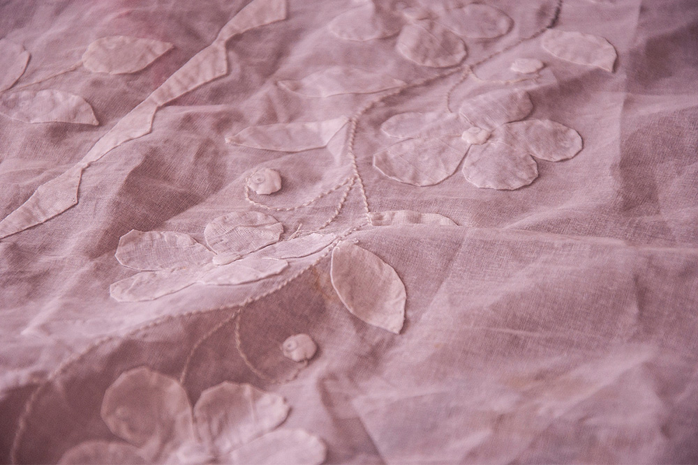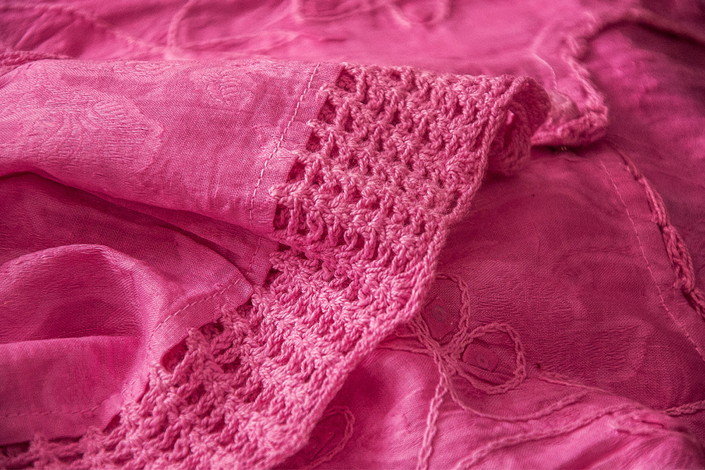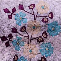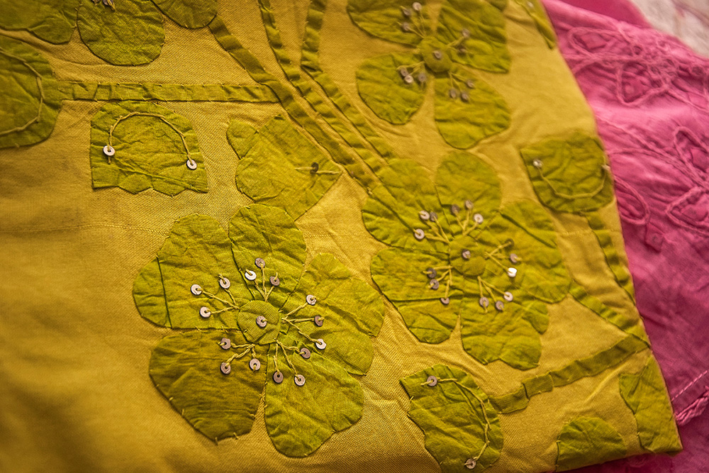 These works are widely used for quilting that is made with both applique and patchworks. Applique generally refers to fabric used with different designs of shapes on the trim of a garment that can be either sewn or glued.