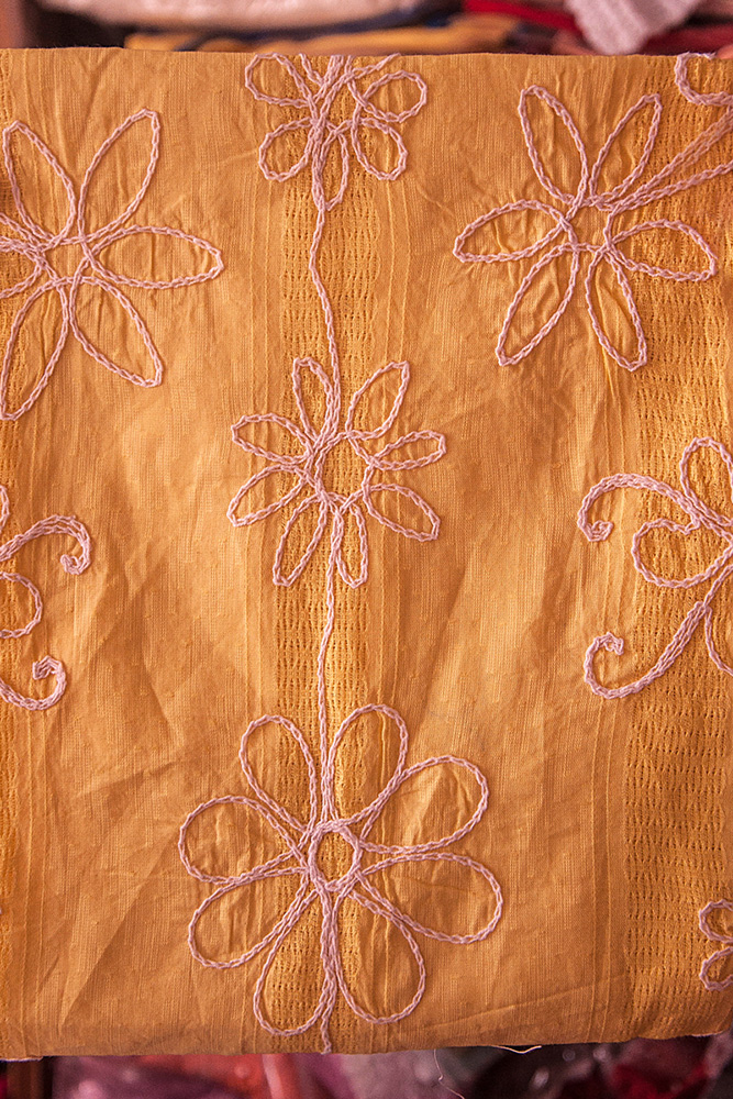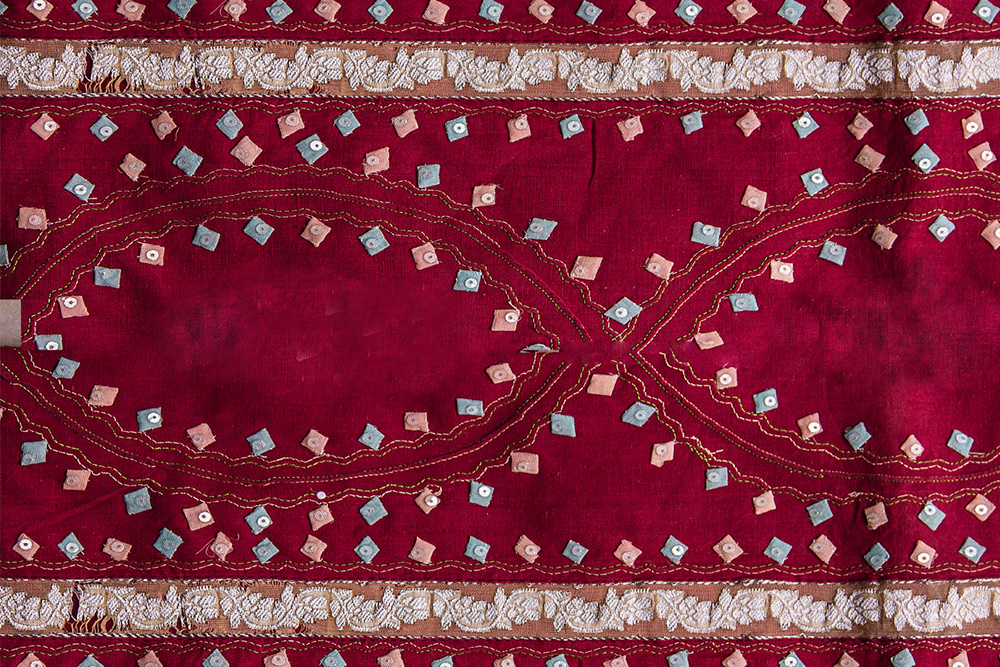 Applique work employees the women folk in the villages of Aligarh of Uttar Pradesh to make the work easier and helps in stabilizing some of the urgent requirements of their family. It is generally known as smaller ornament or method applied on another surface with one piece. The word is said to be borrowed from the French which means applied or thing that has been applied. It is referred to as the surface pattern, which is used to decorate a garment or product. Applique with the needlework method in which patterns with figurative scenes are made by the attachment of smaller pieces of fabric to the backing cloth with distinct color and texture.
