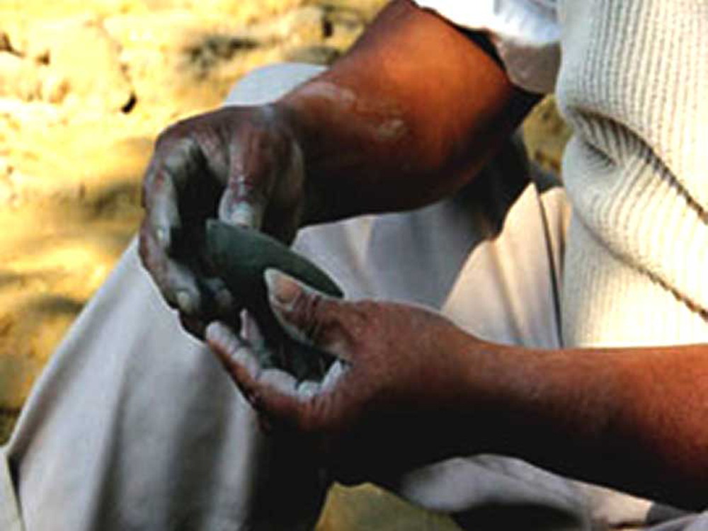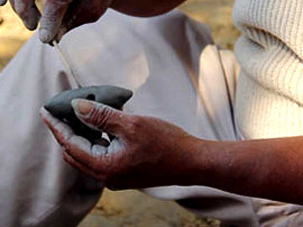 It is made of one type of special clay. Generally it is hollow half-moon shaped part. Its length is about 12 cm. Round shaped sutuli (diameter about 10cm) are also found in some villages. It has a hole in the middle to produce the whistling sound by blowing air into it. There are three holes on its body to control the tune, which the performer uses to manipulate the sound.