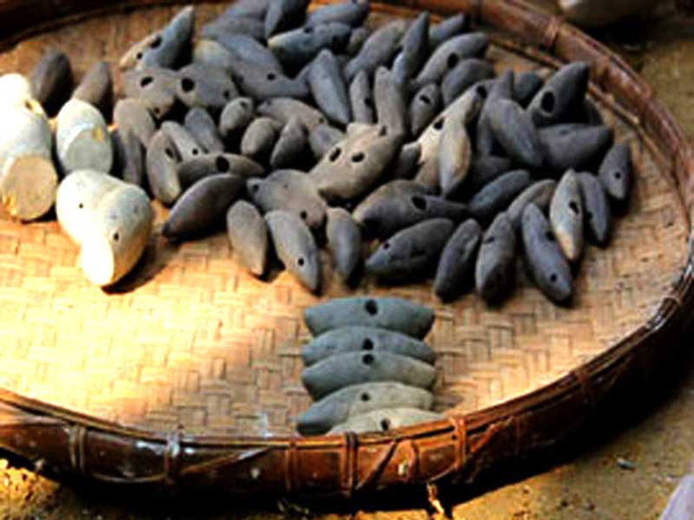 Sutuli is a clay baked wind instrument. This half moon shaped, musical instrument fall under the category of Susira vadya (wind instrument) of Indian musical instruments. An indigenous folk instrument draws inspiration from nature. It emulates the sound of a wild bird-kuli in Assamese or more popularly known as ‘koel’ in Hindi. As dance groups gather in open spaces to celebrate arrival of spring during Rongali bihu, the sound of kuli, as many folk tales and folk songs suggest is the sound most sought amongst natives.