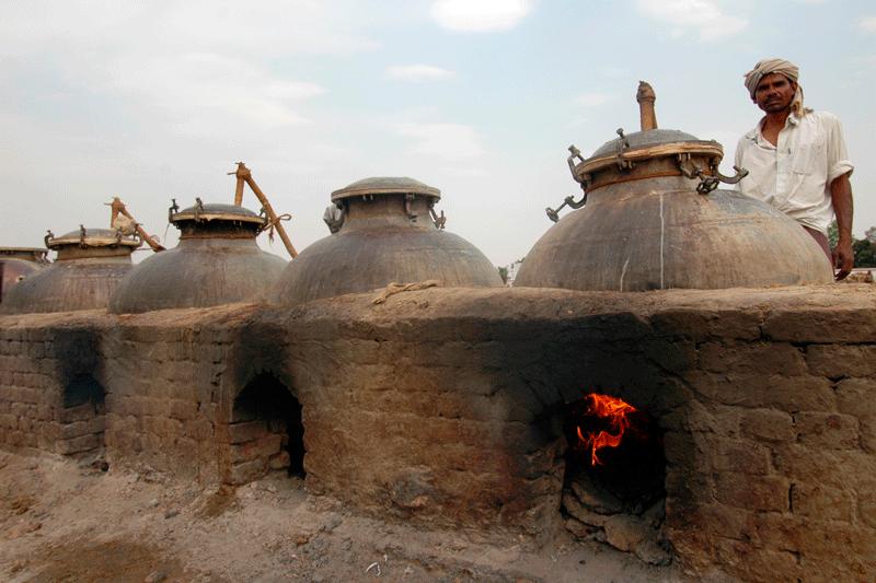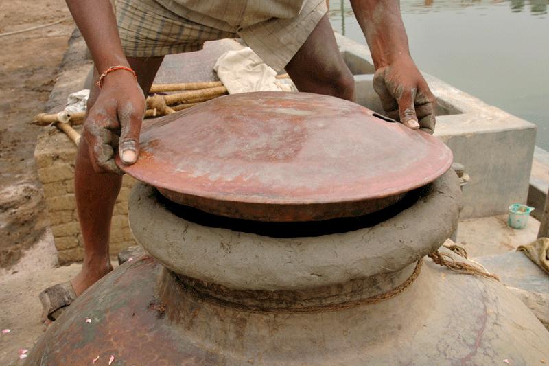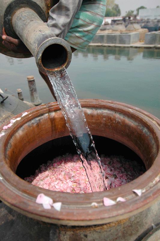 Attars are like flowers - as old as the ages but as fresh as tomorrow’s dew drops. The subtle blending of the various aromas is very likely the creation of melody. Distillation process is carried out in the flowering season only and produces enough stock to last the entire year. For this, fresh flowers have to be plucked at dawn and used before sunrise as fragrances begin to diminish after sunrise. They are put into a metal container along with water. A lid is sealed onto this vessel, which is then heated from the bottom. The vapours pass though a condensing tube, and get collected in another vessel submerged in water. This oil is called ‘attar’. Oils obtained like this are generally distilled into a wood base such as sandalwood and then aged. Ageing period varies from one to ten years, depending on the result desired. Attars can be left pure (natural attars) or blended with other aromatic chemical compounds (synthetic attars). Natural ones are obviously more expensive. Attar’s floral group is primarily of Rose, Jasmine, Champa, Molsari, Harshingar and Tuberose. Among the woods and barks used are Sandal, Cinnamon and Aloewood. Roots of Vetivar and Ginger along with heavy odors of vegetable Musk, Patchouli, Amber, spices and herbs are of great value.