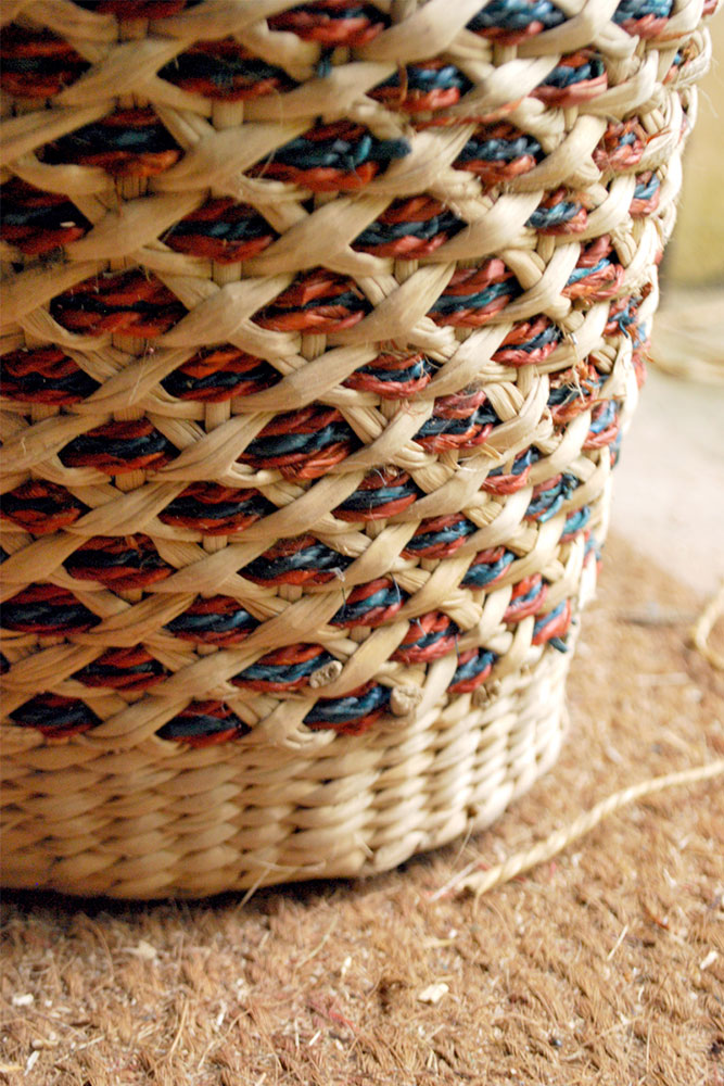 • The dyed grass, the patterns and the stem together enhances the surface of the basket.