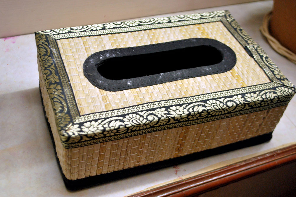 • The tissue holder is aesthetically sewed and ornamented with zari work.