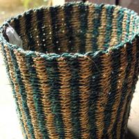 Fruit basket woven using the double twined pattern made of banana stem and bamboo.