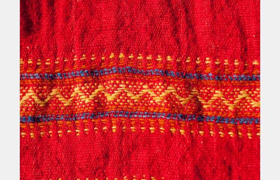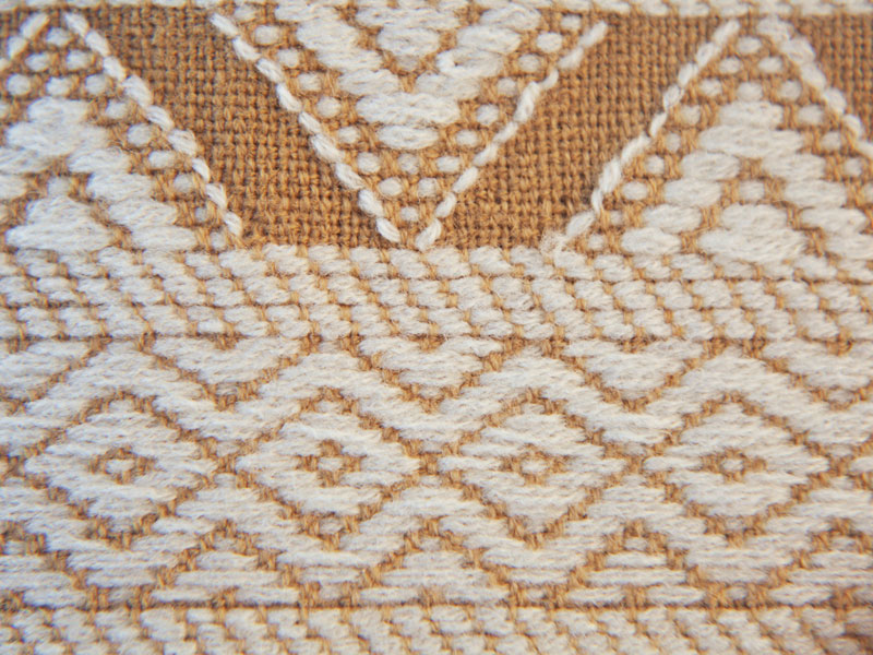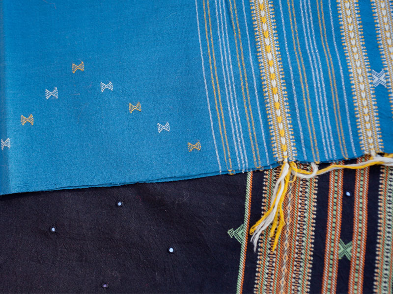 Bhijodi has an age old history of weaving and there are around 2000 families who practice this craft. Traditionally all the processes were done locally, starting from the spinning to the weaving. The raw material (wool and cotton)too were acquired from this region. The products made were community specific and had individual characteristics and styles. Today because of the high demand, yarn is imported from Australia and then dyed and woven locally. This craft is getting good support from local NGOs and market and the Internet is also helping the products to be visible to the outside world. The fabric is woven, with intricate traditional and modern motifs.