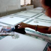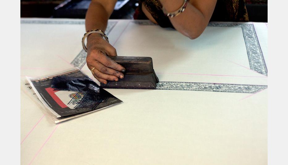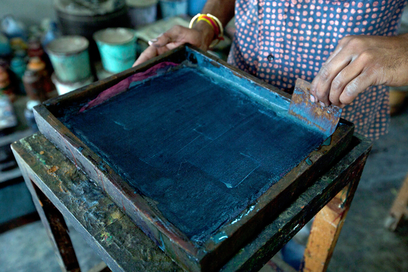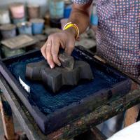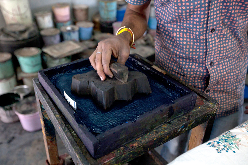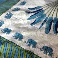 Rajasthan as the hub of craft and culture houses many traditional crafts and among them the most practiced and known craft is hand block printing. The region of Sanganer has emerged as one such centre for the age old craft of hand block printing. Sanganer is a small village situated around 30 km from the walled city of Jaipur and considered to be the most prosperous place in Jaipur. The water of the river Saraswati flowing from Sanganer is considered to be having special quality that brings out the radiance from the natural dyed fabric. The artisans practicing block printing belong to Chhipa community. The block makers mainly make two types of block Wooden Block and Metal Block. Wooden blocks are usually made on teak or seesham wood. The design are first printed on paper and stuck on the block of wood. Artisan, then start carving the wood with steel chisels of different widths and cutting surface. Metal Blocks are used for making intricate patterns and getting high level of clarity in prints. These blocks are made by engraving thin sheets of evenly cut metal strips into the wooden blocks. The metal strips are beaten to make them thin and then strips are cut of even length. The design is drawn on the wooden block and the metal strips are pressed onto the design by gentle hammering. These are costly, time consuming but long lasting. The main raw material is the color used in the printing. Traditionally the artisans used natural colors but today it has been replaced by chemical and artificial colors. The process of printing can be divided into washing, marking, printing, drying and washing again. Traditionally the printing was done for the royal families and motifs are highly stylized. Mainly, motifs are modelled after sunflowers, narcissuses, roses, rosettes, lotuses, nargis, marigold, gulmehendi, javakusum, etc. Fruits like, keri, dhatura, banana, dates, grapes and pomegranate are also developed. Apart from this bel, betel leaf, animals like parrot, fish, camel, elephant etc are also taken as models to create motifs. In some traditional prints katar (dagger) and other weapons are also seen as motifs.