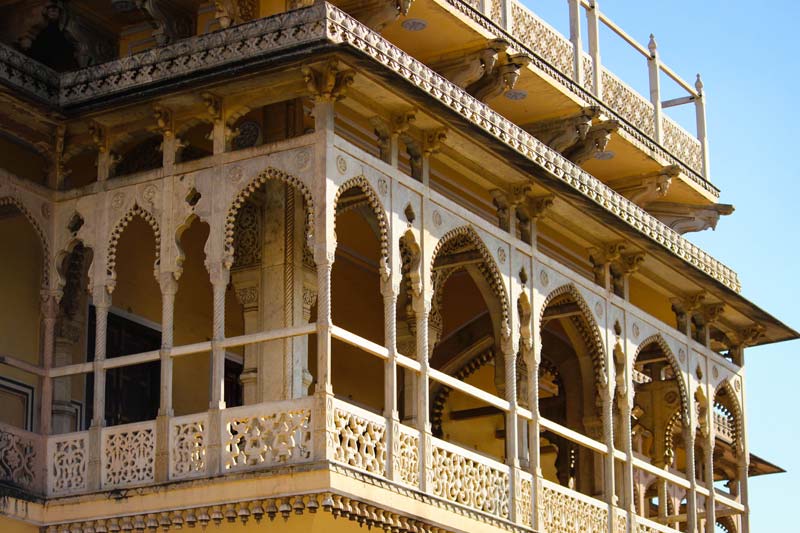 The city palace which is in Jaipur is built by Sawai Jai Singh II. He was the ruler of Amber. This was built between 1729 - 1732. The city palace includes the Chandra Mahal and Mubarak Mahal. Now it is one of the most famous tourist places. Here we can see the mix of Rajasthani and Mughal Architecture in Chandra Mahal. Also, there are paintings of Rajasthani, Mughal and persian schools. There are museums which showcase the different types of weapons used by the warriors, and also there is a display of dresses and costumes of the former Maharajas and Maharanis.