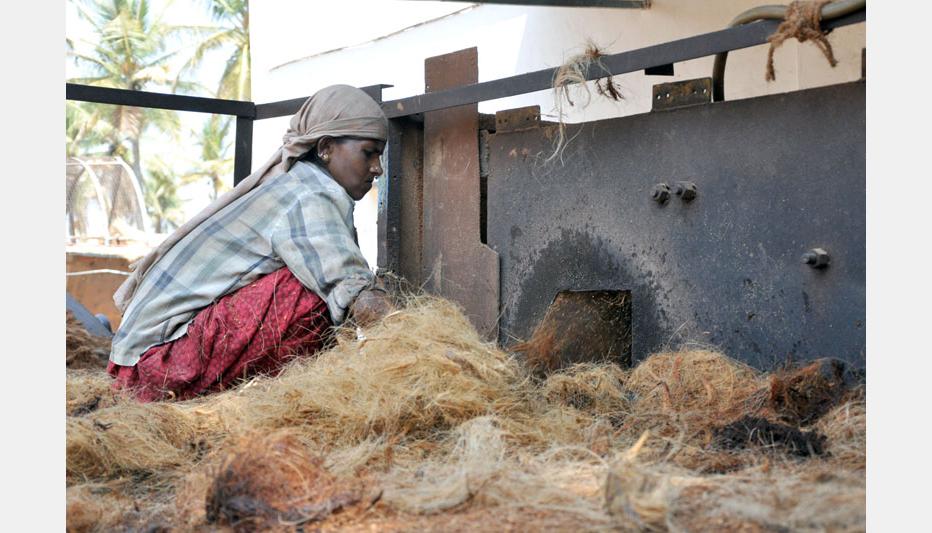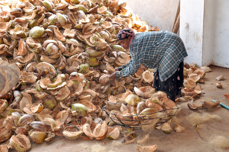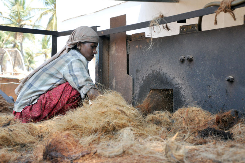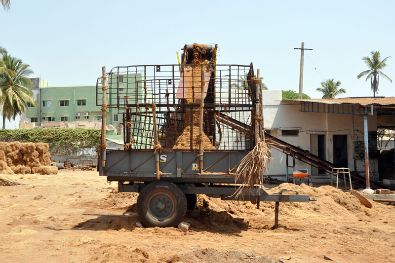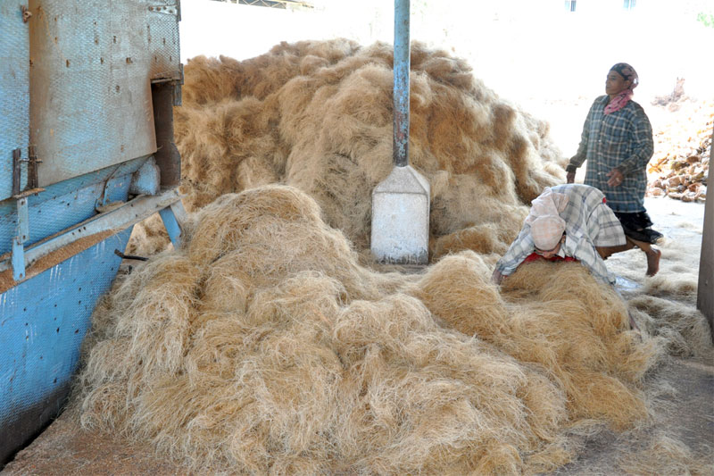 Hiriyur is located 40 km away from the Chitradurga district in Karnataka state. Hiriyur is one of the major producer of coconuts due to good climatic conditions and abundant availability of Vedavati river water. Coir is the natural fiber which is extracted from coconut. The fiber which is extracted from coconut husk is processed in automated machines to remove the fiber. Then the processed fiber is manually entwined into coir ropes.