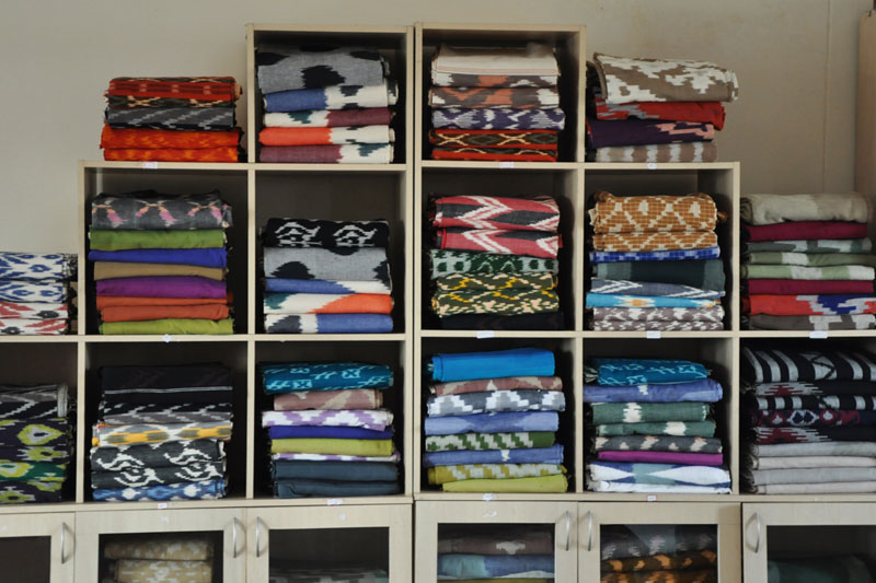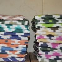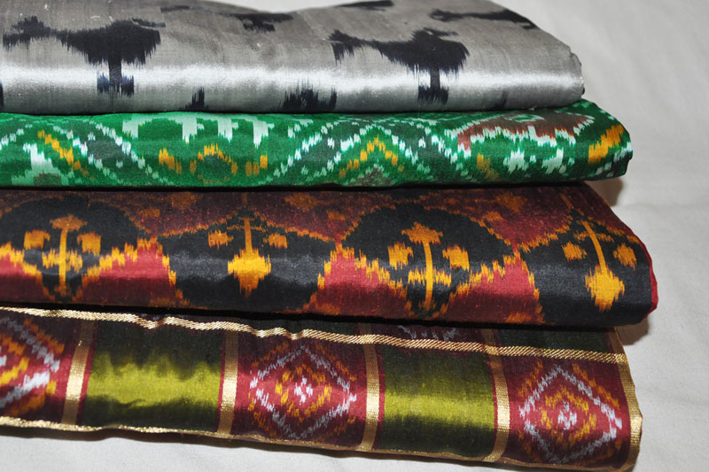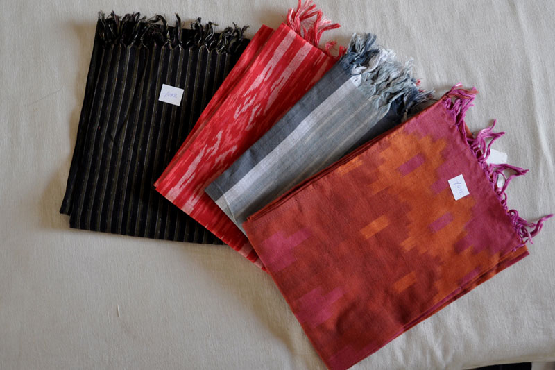 Pochampally weaving cluster is mainly concentrated on producing cotton products. Silk saris are produced based on the customer orders. The unique Pochampally weaving standout for their intricate patterns created by coloring onto warp and weft threads first and then weaves them together in Ikat style. Spectacular designs are beautifully composed with combination of vibrant colors and rich count of threads. The range of products includes, silk and cotton sari, scarves, stoles, bags, pouches, sari bags, and women's dress materials. Men's wear includes shirts, kurtas, and pants. Others include bed sheets, Divan sets and curtains.