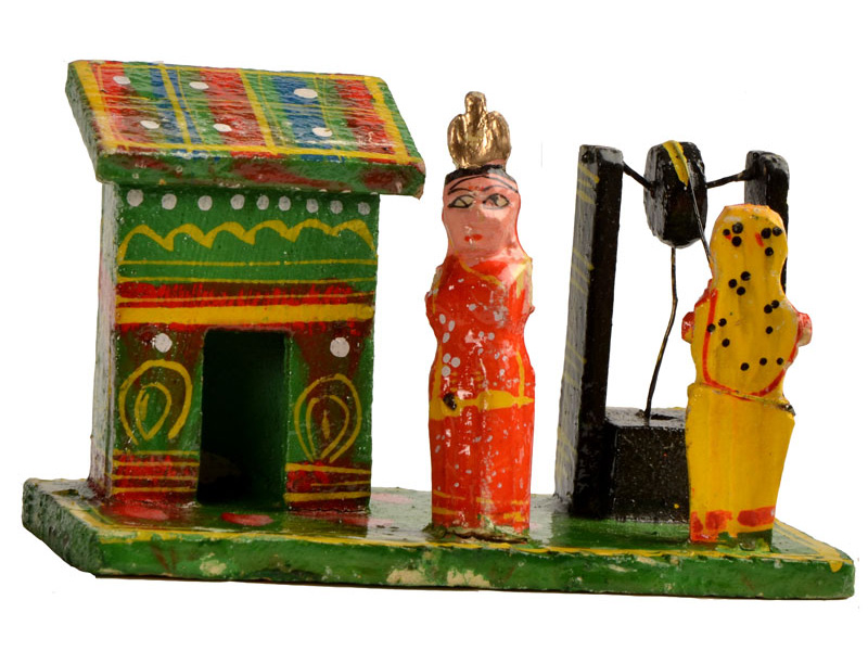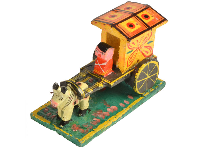 One gets to see the real culture and tradition of India in its villages. Many activities like farming, drawing water from a well, bullock carts, etc. are still thriving in the rural part of the country. Thus, the toys made on this theme primarily show the culture of the rural India which consequently affects the clothing style, patterns, colors, etc. shown in the toys by the craftsmen.