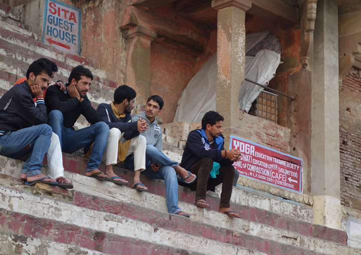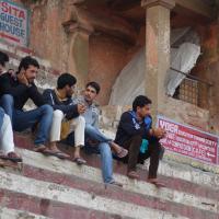 It has a wide acceptance for people from all walks of life, all parts of the world and creatures big and small. This city awakes at the crack of dawn. The prayers, rituals and habits of the Hindu ideology are engrained into the daily life of the people here. Bathing, washing clothes, giving offerings, going for long walks, meditation or chanting all echo in the early morning sky. Crows and parrots all pitch in as well, indifferent to individual inclinations. As the sun comes up locals, boats-men, tourists, chaiwalla's, paanwalla's, students, birds and stray animals all find their way onto the Ghats, there is something overwhelming about the River Ganges and her sandstone Ghats that gives you a reason to greet her every day.