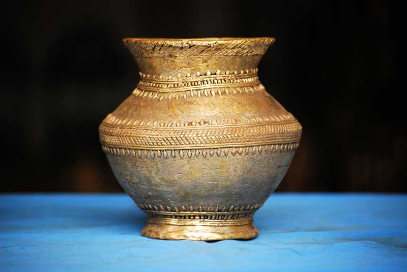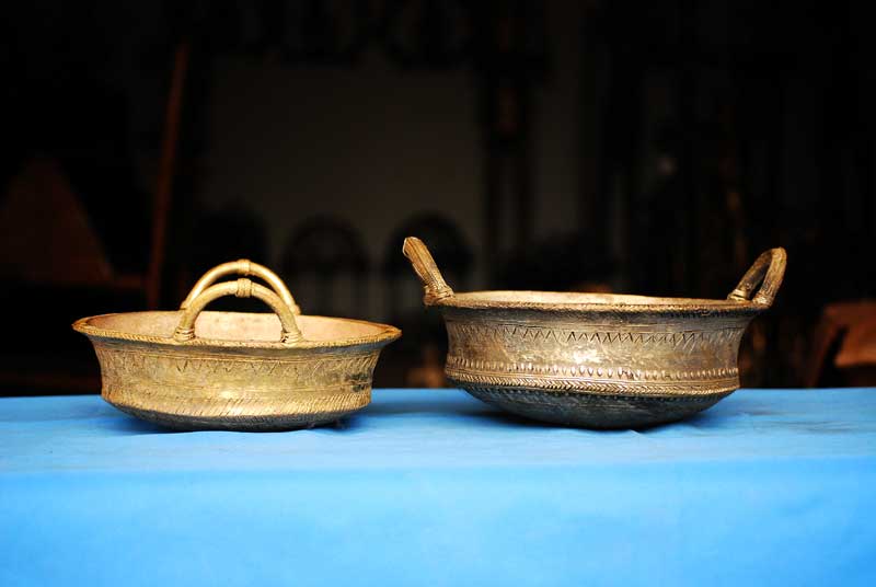 The term "Dhokra" is believed to be deriving from the word "dhokna", which means to cast. "Dhokra Shilp" is the regional word for the craft of bell metal casting. It is one of the most distinguished craft of Chattisgarh. It is also famous for its traditional lost wax technique which has been carried forward since thousands of years of its origin. Artifacts similar to the present craft form have been discovered at the sights of Mohenjedaro and Harappa. Dhokra shilp is widely practiced by the Ghadwa community of Bastar. The handcraft includes traditional ornaments, animal and tribal figures, idols of the local deities, which are most popular in the region. Earlier bell metal crafts were used for ritualistic and daily use purposes only. The Ghadwa craftsmen used to supply the utensils of daily use to the villagers.