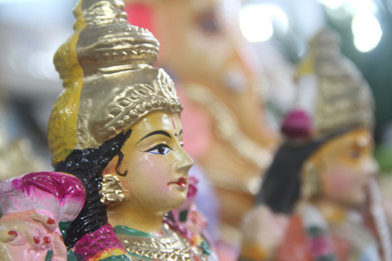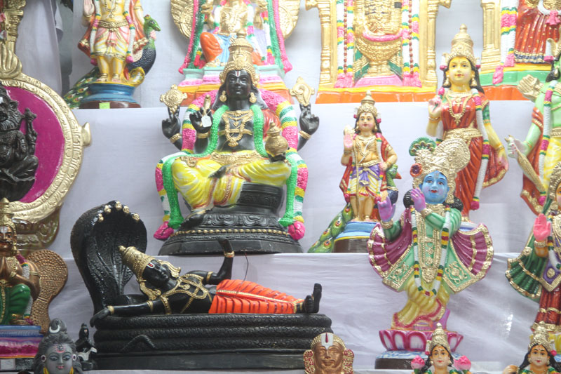T Nagar in Chennai is a major commercial shopping area with one of the largest footfall happening throughout the year. A round the year figurine exhibition exists at the heart of T Nagar with figurines from all over the country. These figurines majorly constitute of mythological deitys from different religious faiths.