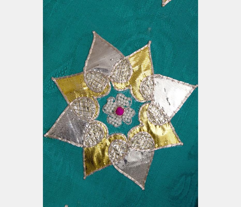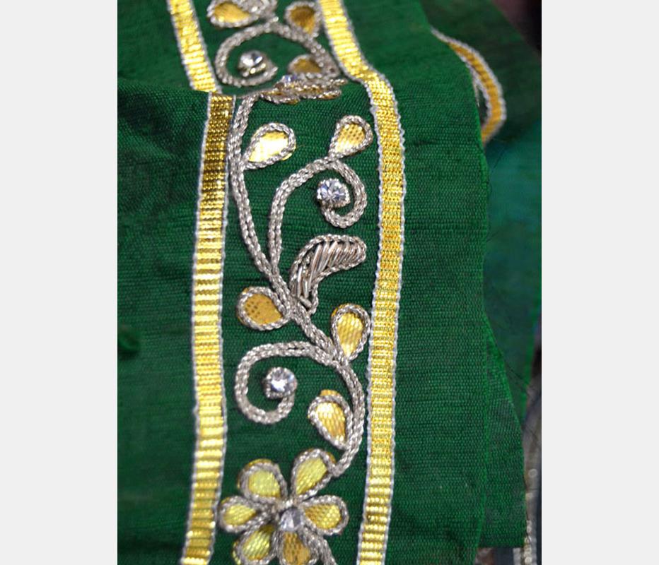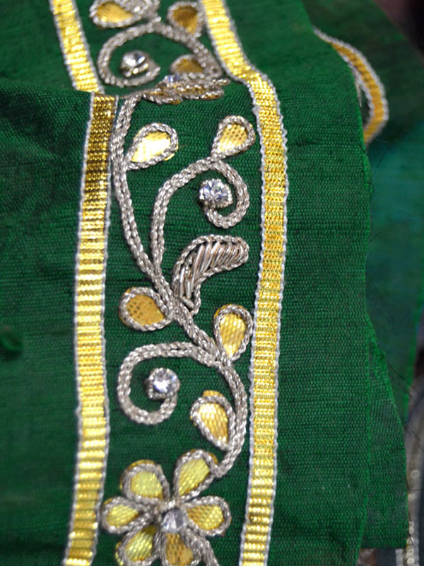 Rajasthan has always been identified as a mosaic of unsurpassed beauty. Though there are several arts and crafts prospering in the state, Gotapatti, a type of Indian appliqué-embroidery, leads them in all their glory. Outfits with Gota work, also called 'Lappe ka kaam', are worn at auspicious occasions, especially weddings. Traditionally, Gota ribbons were used as decorative trims for garments used by the royalty, members of the court, temple idols, and priests as well as for altar cloths at shrines and prayer offerings.