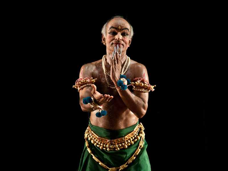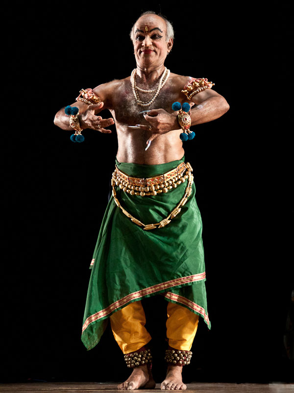 Shri. Guru Sadanam Balakrishnan was born in 1944 in Taliparamba in North Kerala and showed remarkable interest in Kathakali from his child hood. He was initiated into this art by Guru Kondiveetil Narayanan Nair under the patronage of Late. Brahmashri. Kurumathur Narayanan Namboothiripad and subsequently took intensive training for 10 years under famous Gurus Thekinkattil Ramunni Nair and Keezhupadam Kumaran Nair at Gandhi SevaSadan Kathakali Academy. It was during his training under the most outstanding contemporary Guru, shri Keezhupadam Kuamaran Nair that Balakrishnan blossomed into a great artiste and competent teacher.