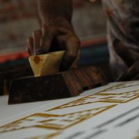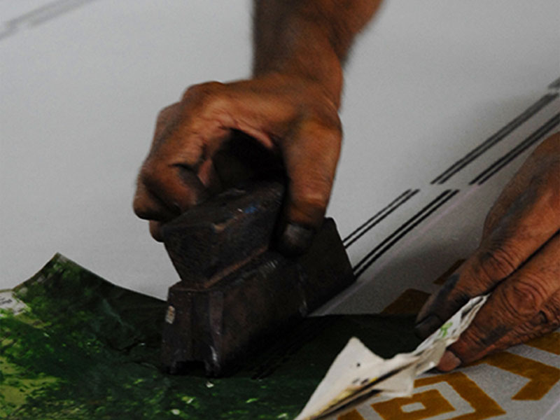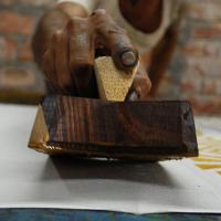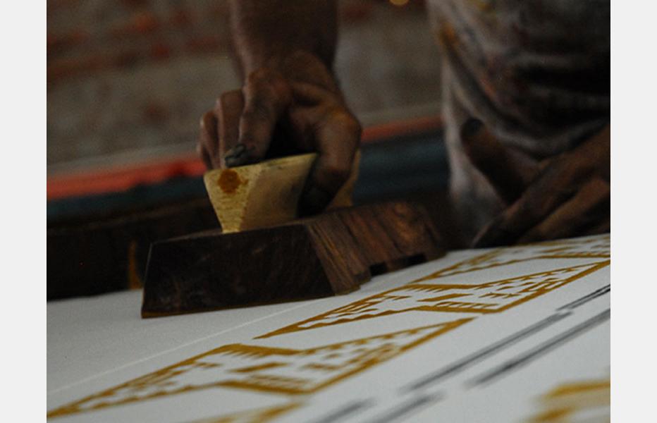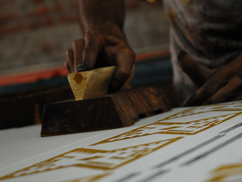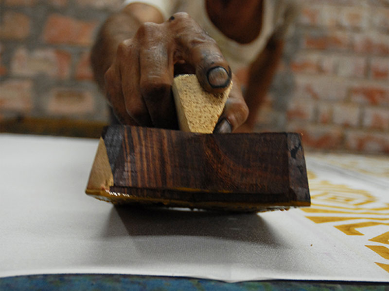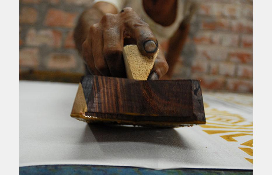 Hand block print is one of the techniques of applying colour in a definitive pattern on textile surface. As the name suggests, a block of wood is prepared and desired pattern is carved out on one of the flat side. This side is dipped in colour and then placed on textile surface.