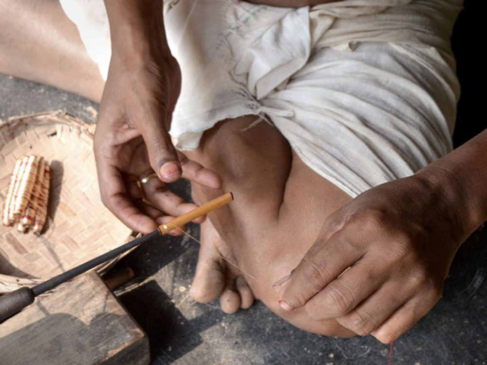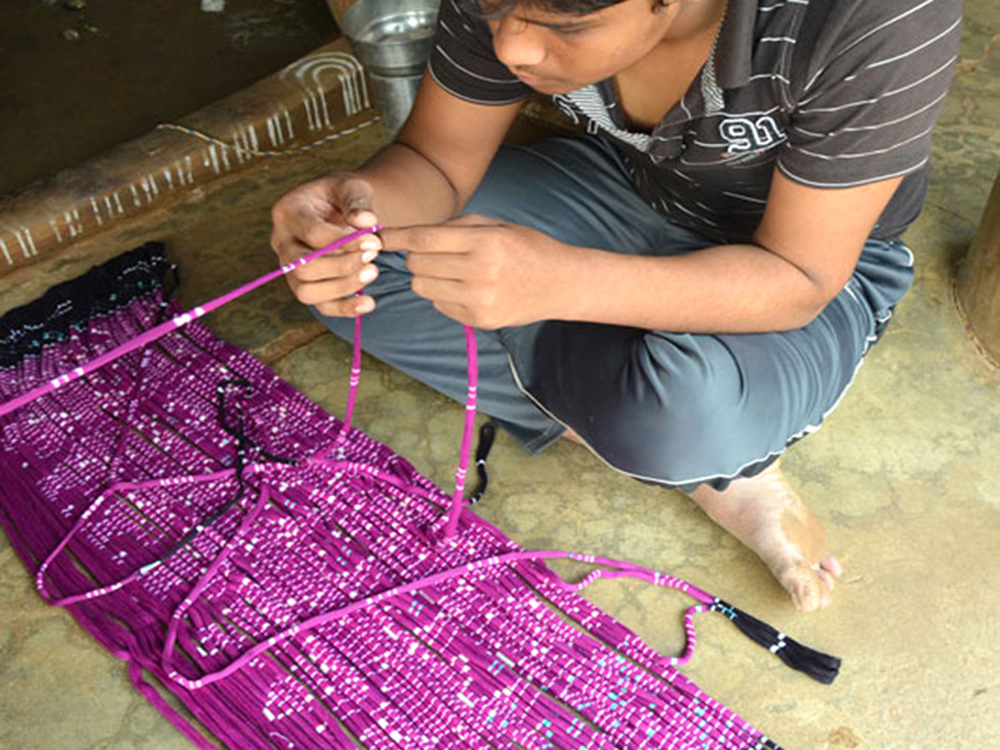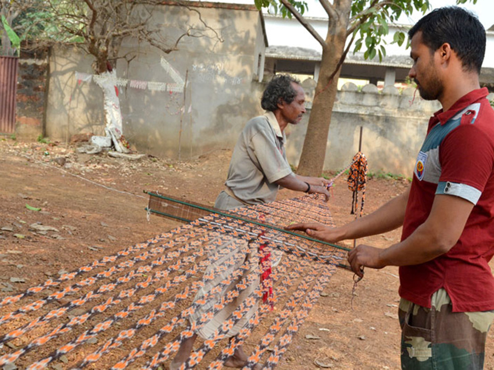 Ikat requires immense skills for detail of de-constructing the desired pattern according to the density of the cloth, winding threads on the frame according to the calculations made, covering selected sections of the weft for resist-dyeing and finally weaving. The entire process involves almost an entire family’s participation in different aspects.
