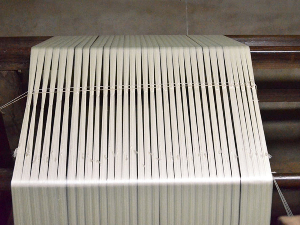 • A craftsman preparing the plain warp.
