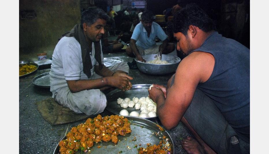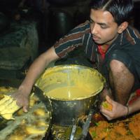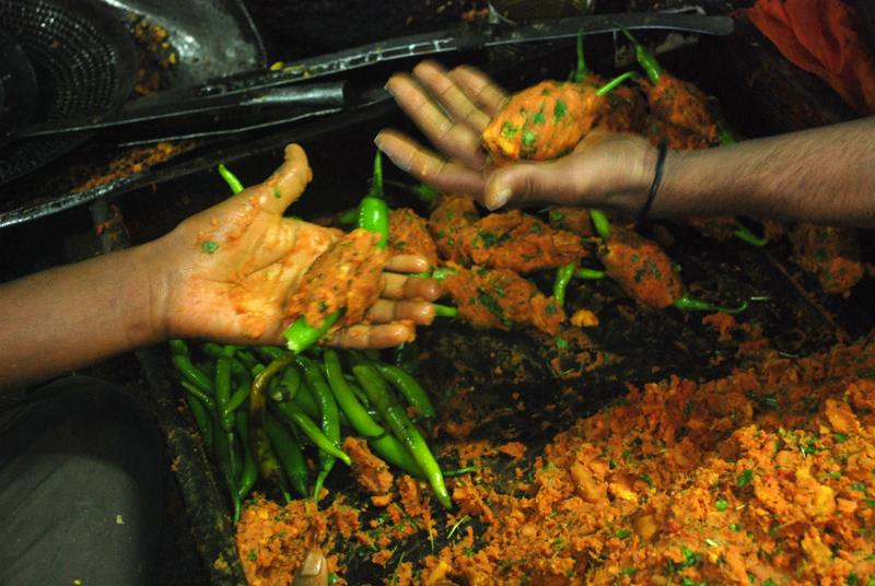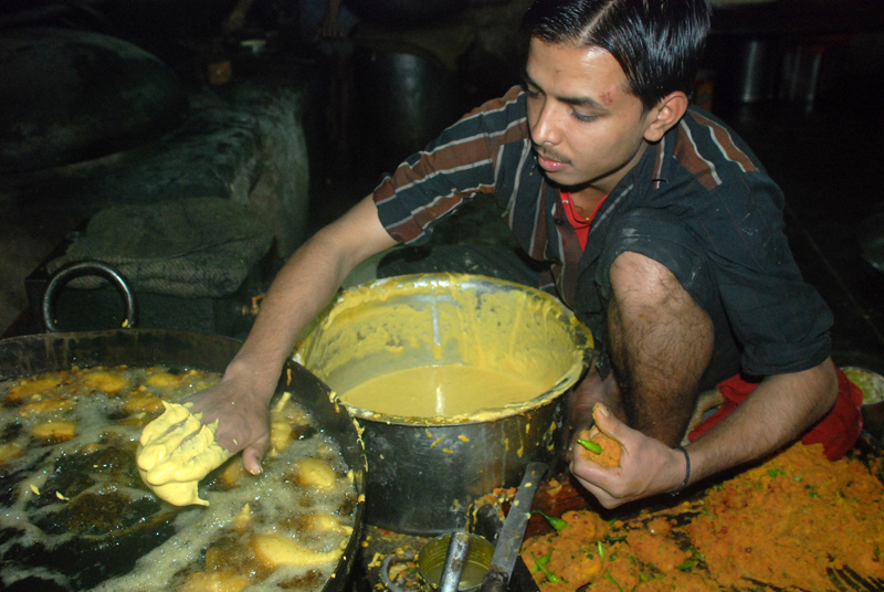 A few items which are famous and sell the most are traditional “Pyaz Kachori”, “Mava Kachori” and “Mirchi Pakoda”. Takeaway counter is crowded with people, local and tourists, standing, sitting and eating.