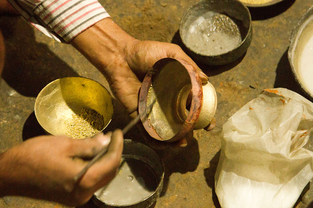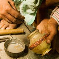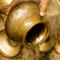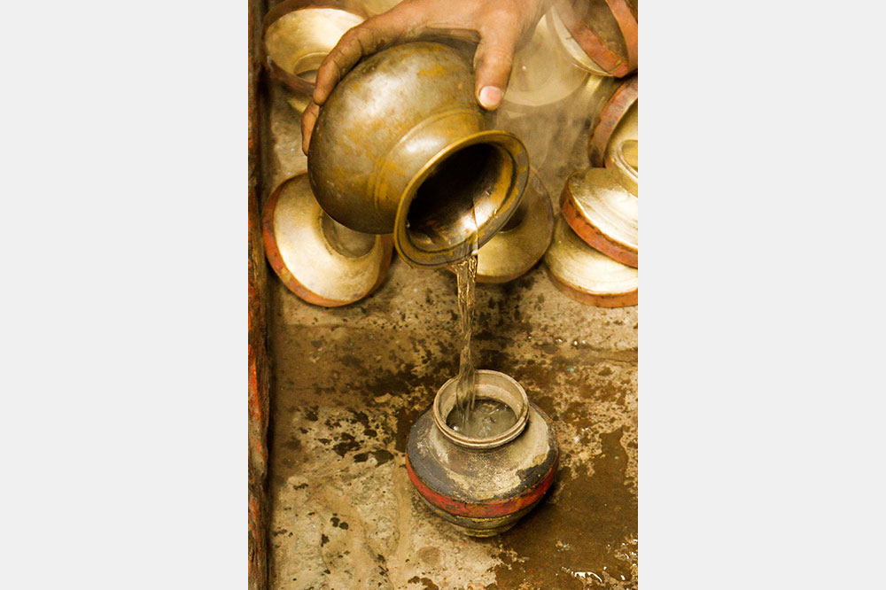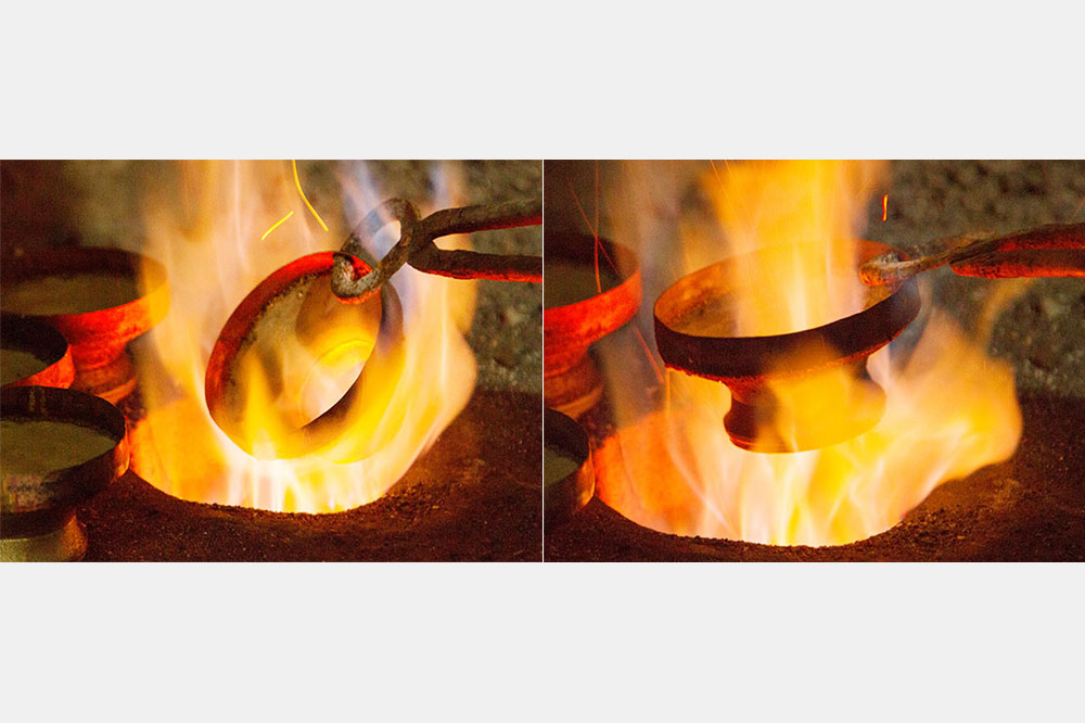 • Water is poured on the fired kamandalu to calm down the temperature.