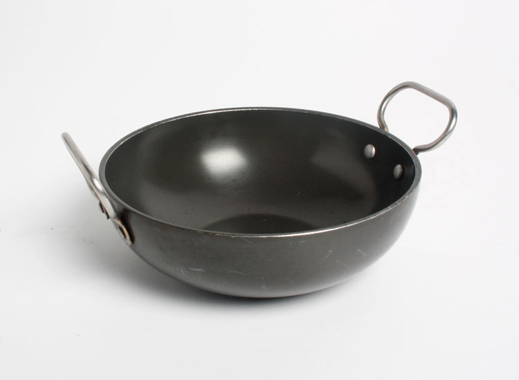 The traditional Kadai is usually made of thick high-carbon iron, cast-iron, brass, or aluminium. Better quality Kadais have a heavy bottom where a layer of aluminium is sandwiched between two layers of stainless steel for better and even heat distribution. Nowadays they are also available in the non-stick (Teflon coated) material, hard anodised aluminium too. Some of them are available with lids too.