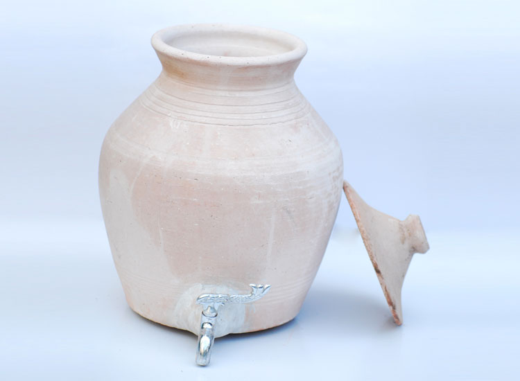 Earthen pots are used to store drinking water, a wonderful way to cool drinking water and without consuming any electricity whatsoever. Called “Matka” in Hindi and “Mann Paanai” in Tamil, earthen pots are the most effective way to cool water to just the right temperature. Unlike refrigerators which over-cool water, the pots cool them just right. The earthen pot cools water by Evaporative Cooling. The earthenware pot absorbs some of the water in it, then the outside of the pot will be slightly moistened. As this moisture on the pot evaporates, the temperature of the pot is reduced due to evaporative cooling (same way sweat cools the body). This cooling effect will keep the temperature of the pot lower than it would otherwise be.