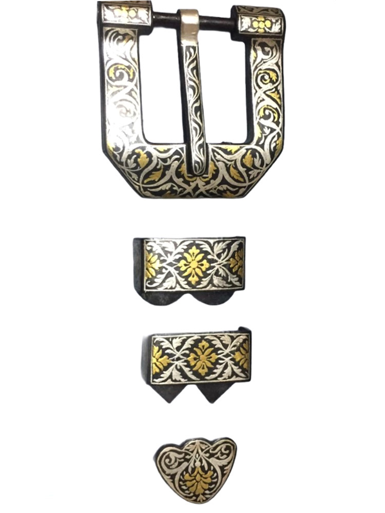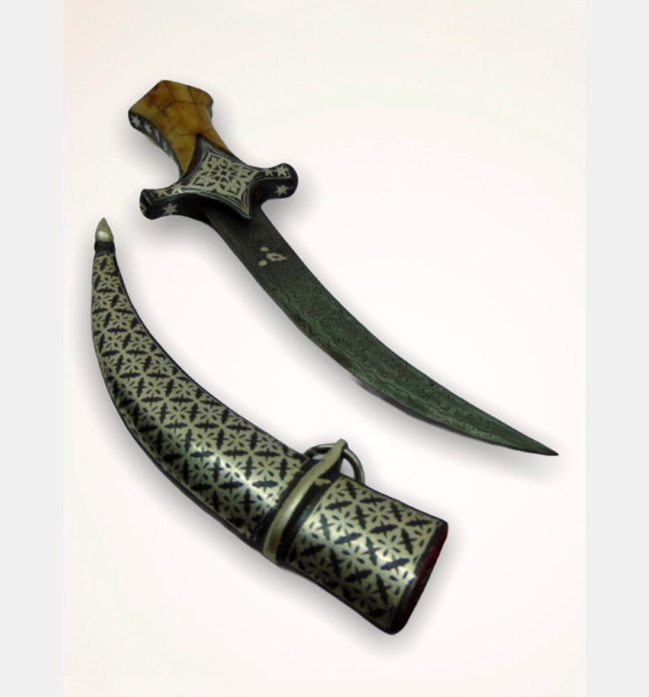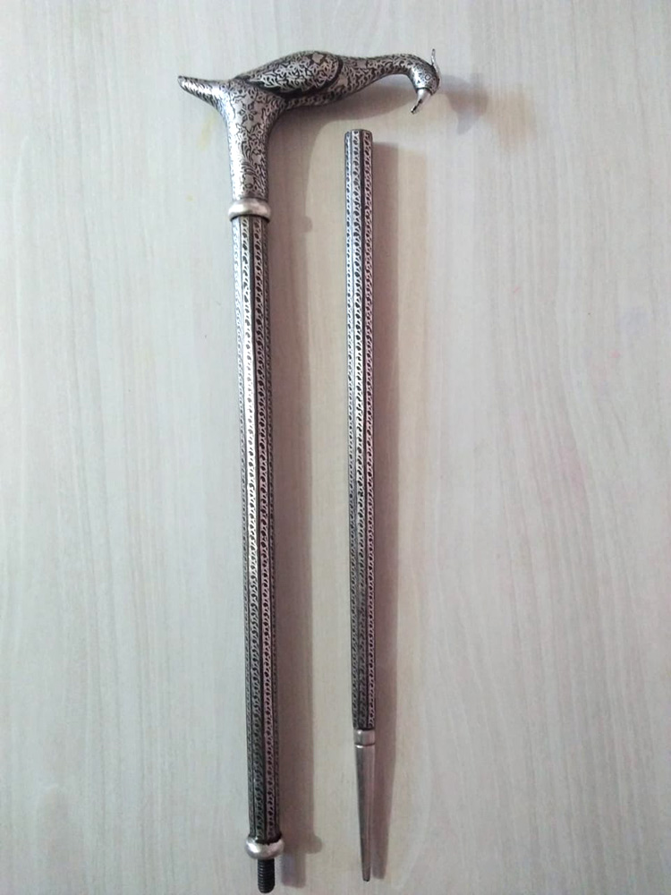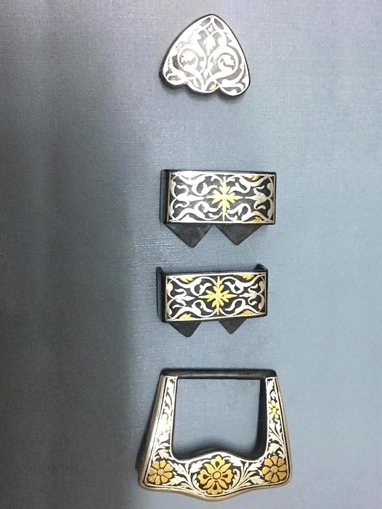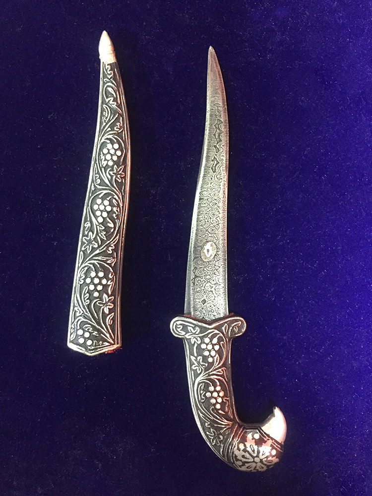 The art of decorating arms and weaponry is known as Koftgiri. This art originated in India around 500-700 years ago with the Mughals. An age-old craft is practised in Mewar district. Nowadays it can be seen in Jaipur and Udaipur. Koftgiri refers to the action of ‘beating’ the pattern into iron. It can be both an inlay and overlay art. It is the art of ornamenting surfaces by inlaying light metal on a dark one using gold or silver wires.