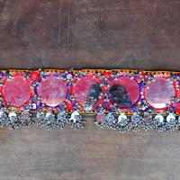 Lambanis are also known as Banjaras. They belong to a tribal group with nomadic heritage who migrated from Marwar and resided in southern and middle India. The women of this community hold loyalty to their traditional form of costume, which is the most colourful and elaborate of any tribal group in India. Lambani and Kutch embroidery look similar because of their mirror work, but shells and coins used for Lambani work are different in style. This practice of hand embroidery and mirror work is mainly used on the traditional dresses that are given to their daughters for their weddings. These conventional clothes reflect their love of life that evolved across the centuries to suit the social conditions and local climate.