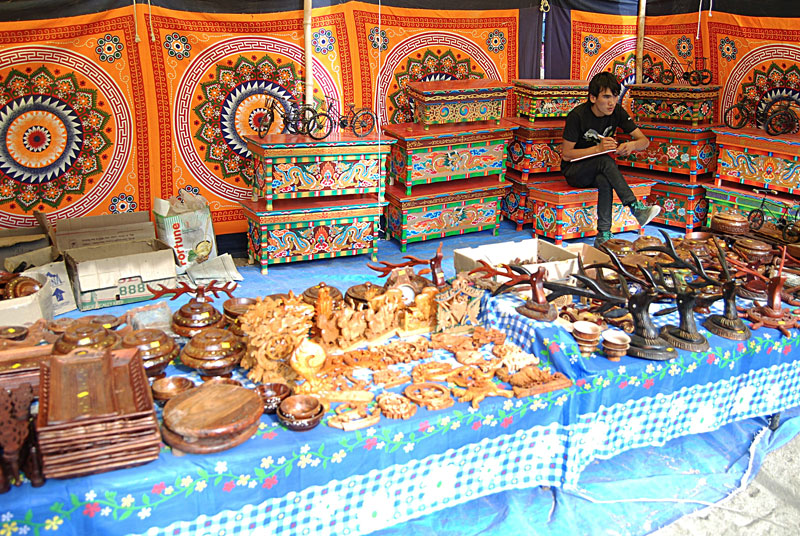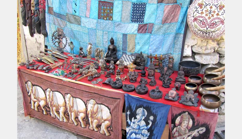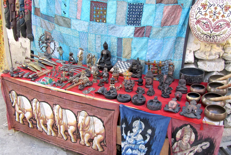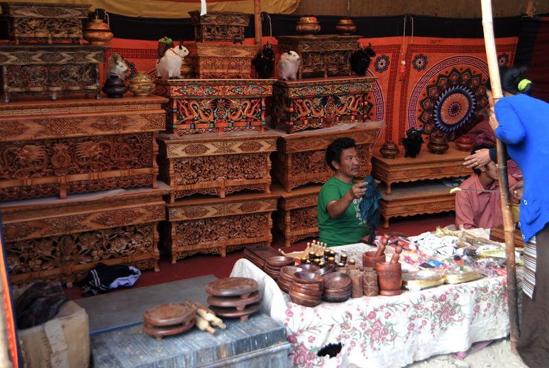 The market is full of Tibetan handicraft items including prayer wheels, Buddhist masks and Thangka paintings, Tibetan silver jewelry and traditional Ladakhi jewelry. Most of artifacts are not locally made but are brought by vendors from Srinagar, Nepal and Tibet.