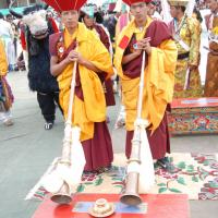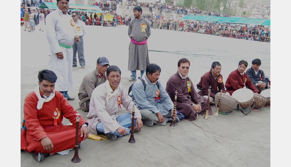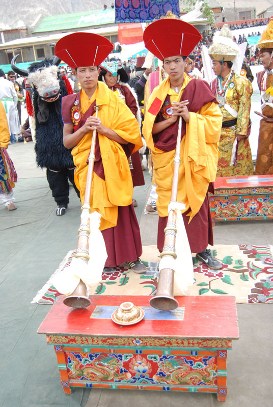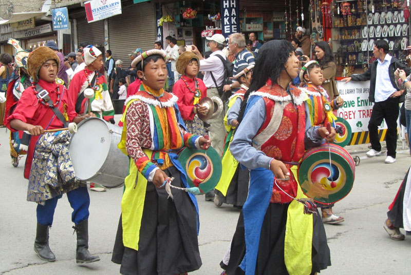 Participants from surrounding regions & valleys of Ladakh parade from Karzu to Polo ground where the actual inauguration ceremony is performed. A traditional music called “Larnya” is played at the inauguration ceremony. Surna & Daman are traditional instruments for music. These are used for religious chanting and during mask dances.
