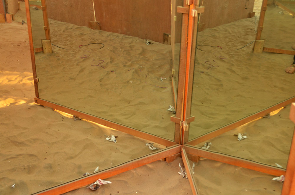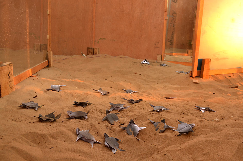The installation particular consisted of arranged set of mirror panels and lighting done in such a way that they appeared to be as moons. When you enter, you are easily confused of the right path to follow and you get lost. Something which related to baby turtle scenario mentioned above.