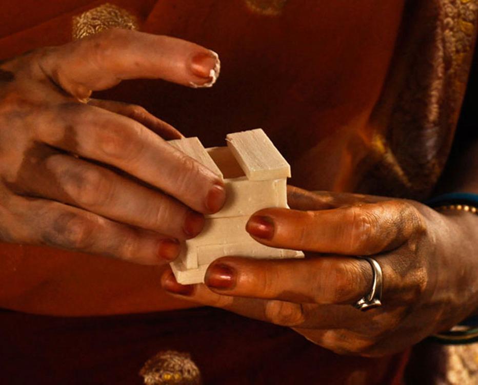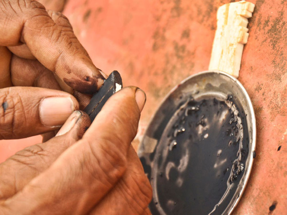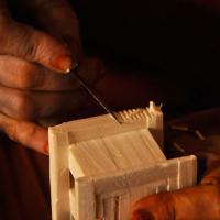 Thanjavur pith work is famous for miniature works of Thanjavur temples and idol making. The finished pith work is generally fixed to a wooden base and covered with glass to protect from dust and moisture. This helps to preserve the works for years.