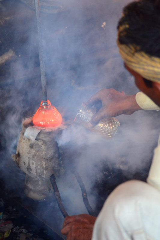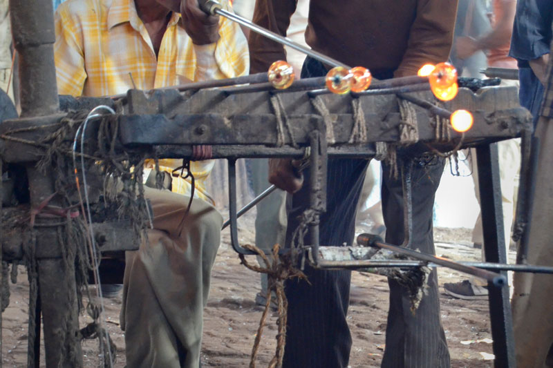 Glass is a unique material for the expression of art and craft. Amongst all material, it offers the highest degree of flexibility for shaping into a wide variety of products varying in design, forms, color and appearance. Firozabad with the changing time has entered in to new era of glass manufacturing. It has become a major hub of glass products and has registered its global presence, diversifying its industrial base. There are different types of processes for making bangles, tableware (glass-blowing) and small items like toys, idols for worship etc. (glass-fusing).