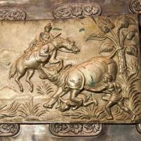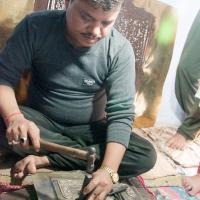 Kashipura located in Varanasi is one among famous place for sheet metal embossing art. Craftsman usually prefers copper and brass sheets in embossing work. Metal sheet is the basic Raw material used to make embossing work. The product price is based on the size, shape and the material used. Work usually takes one year to six months or sometimes it will be completed in two months.